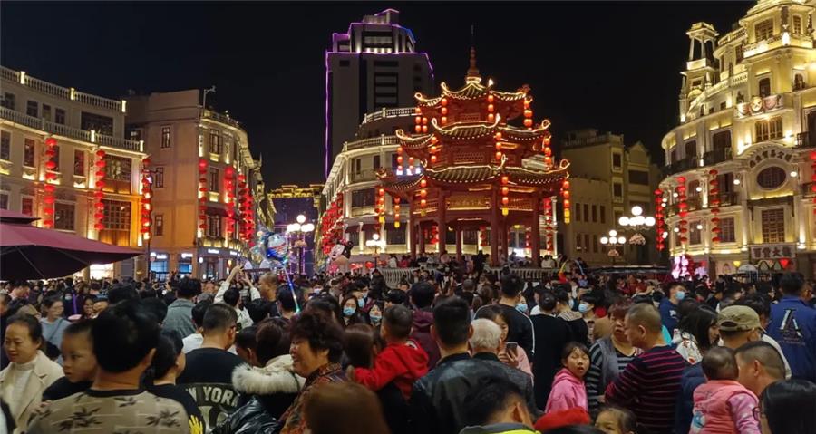 小公園開埠區(qū)是春節(jié)里我市最受歡迎的景點(diǎn)之一,今年湖南衛(wèi)視華人春晚,讓汕頭小公園又上了熱搜。假日期間的小公園,一到晚上更添韻味,古色古香的騎樓和小公園亭被燈光裝點(diǎn)得特別靚麗,吸引了大量游客前來“打卡”。據(jù)統(tǒng)計(jì),大年初一至初四,小公園歷史文化街區(qū)每天的游客都超10萬人次以上,初三單天人流量超過15萬人次。