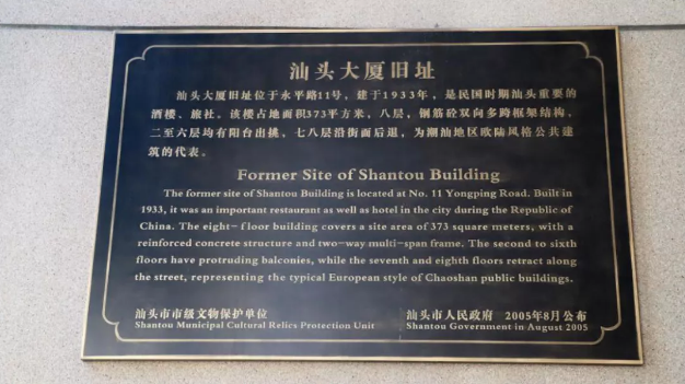 汕頭大廈舊時(shí)為汕頭埠最高檔酒樓之一,矗立于一片騎樓中間,樓體為鋼筋砼雙向多夸框架結(jié)構(gòu),配置有進(jìn)口英式電梯的八層建筑,中西合璧的民國(guó)建筑風(fēng)格及內(nèi)部奢華的布置,乃老汕頭繁華時(shí)代的象征。