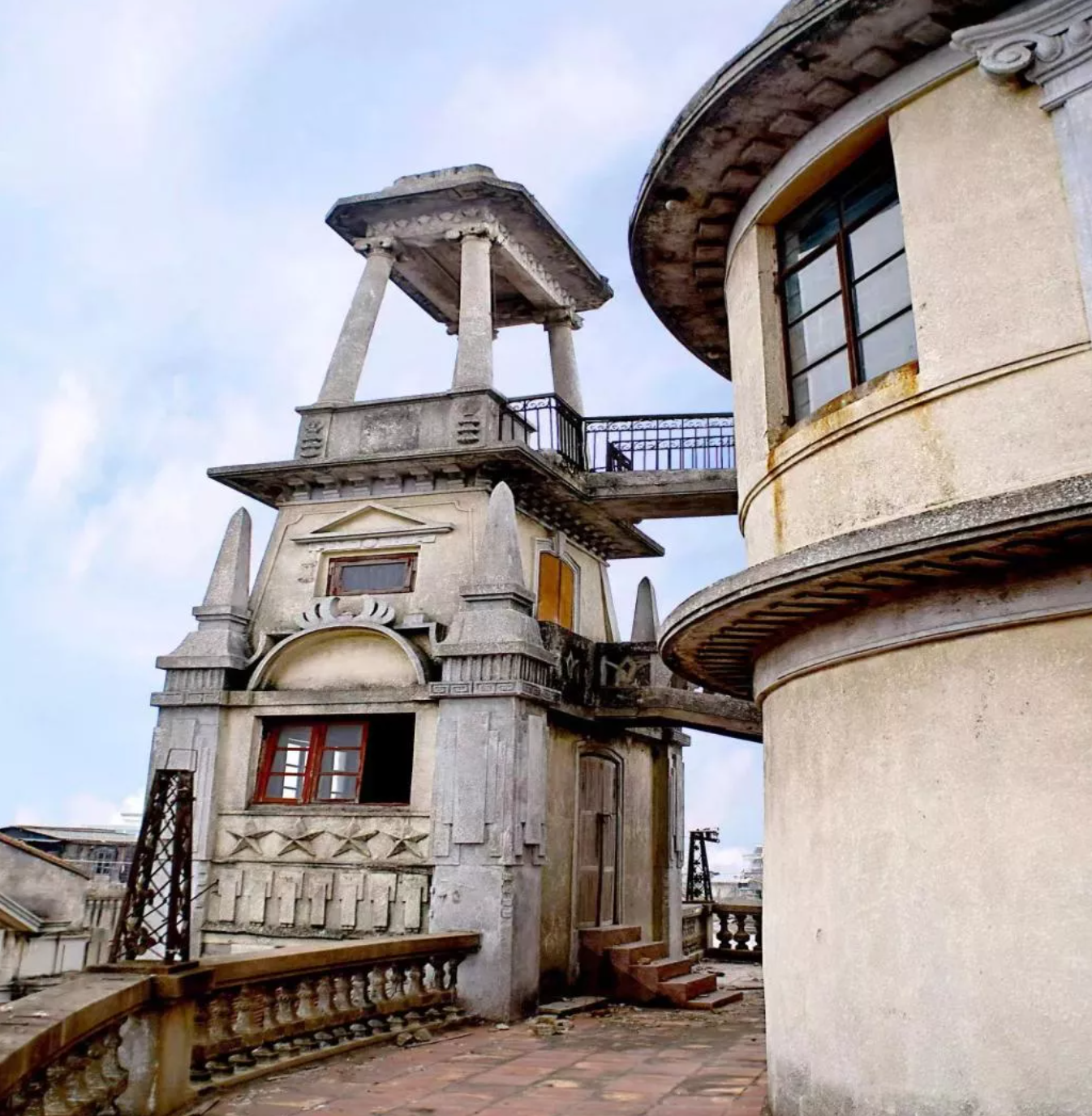 那時大樓每晚燈火輝煌,璀璨奪目,每層騎樓設(shè)鐵花架,種植花卉,清雅宜人。平面柱網(wǎng)布置較為靈活,二層外挑,使其下形成半室外的灰空間,并在五六層連續(xù)后退,既使建筑體量富于變化,也形成了室外陽臺。在兩個出口處升起兩個塔樓,塔樓與主體在六七層處通過空中走廊連接。主立面的開窗形式注重不同樓層的變化,不僅豐富了立面,也給人以豐富的空間感受。