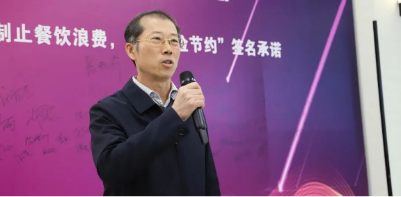 張虹莉宣讀“關(guān)于制止餐飲浪費,厲行勤儉節(jié)約倡議書”, 并帶頭在簽名板上承諾簽名。