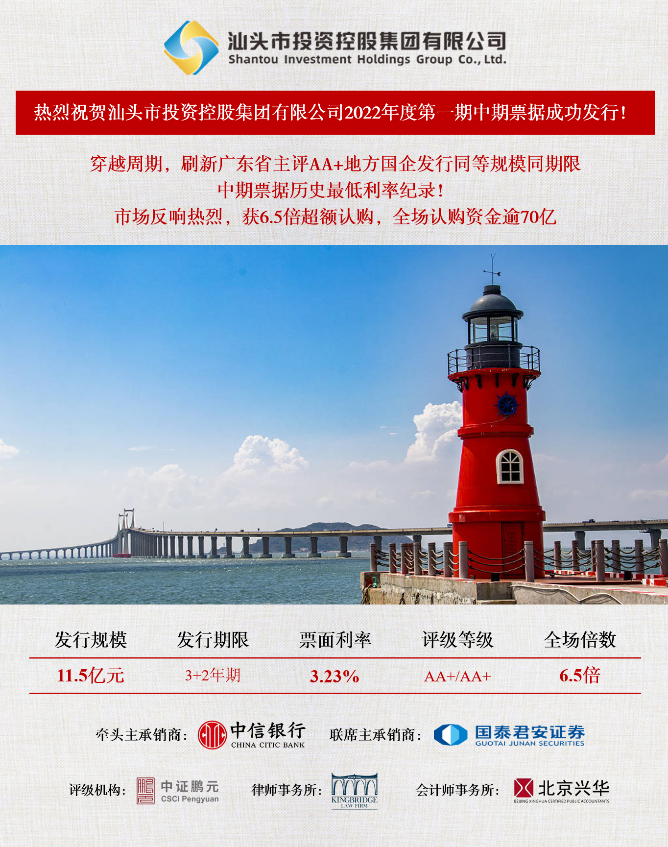 票面利率3.23%!汕頭市投資控股集團有限公司2022年度第一期中期票據(jù)成功發(fā)行