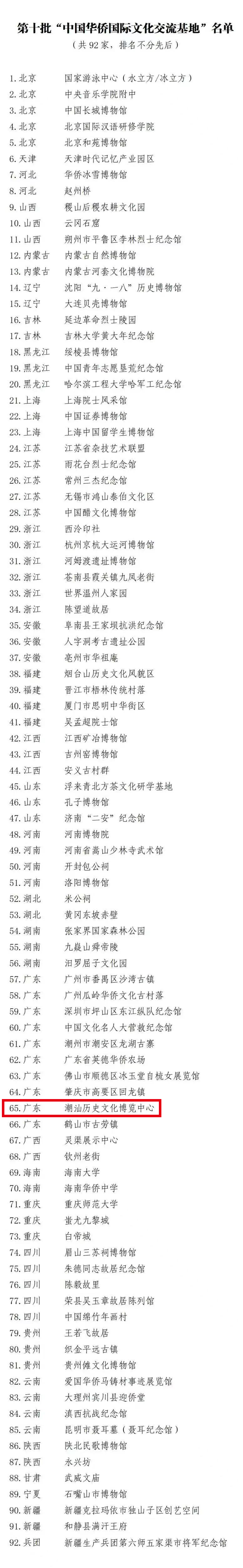 近日,中國僑聯(lián)研究確認92家機構(gòu)和單位為第十批“中國華僑國際文化交流基地”,其中,潮汕歷史文化博覽中心(簡稱:潮博中心)作為汕頭市唯一一家入選單位名列其中,與國家游泳中心(水立方/冰立方)、中國長城博物館、中央音樂學(xué)院附中等文化、教育單位共同喜獲榮譽稱號。