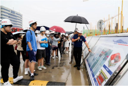 在施工現(xiàn)場(chǎng),施工單位中鐵建設(shè)集團(tuán)汕頭高鐵站樞紐一體化工程項(xiàng)目總工程師為師生們介紹了項(xiàng)目工程概況、技術(shù)質(zhì)量管理、技術(shù)創(chuàng)新和應(yīng)用、質(zhì)量標(biāo)準(zhǔn)化示范工地創(chuàng)建等情況,講解每道工序的施工過程,并就大家提出的工程技術(shù)問題逐一進(jìn)行答疑解惑。