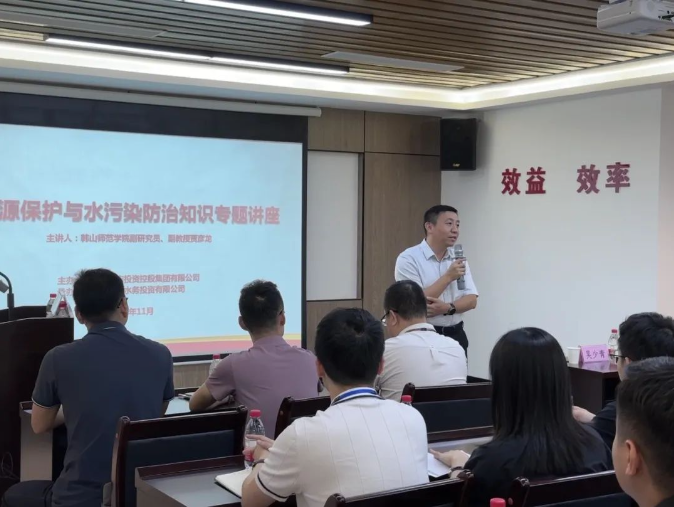 為深入貫徹習近平生態(tài)文明思想,提高廣大干部職工的環(huán)保意識,積極發(fā)揮國有企業(yè)在民生領域布局中的擔當作用。近日,汕投控集團下屬企業(yè)水投公司邀請韓山師范學院賈彥龍副教授作水資源保護與水污染防治知識專題講座,集團公司領導班子及各下屬企業(yè)、各部室相關人員參加學習。