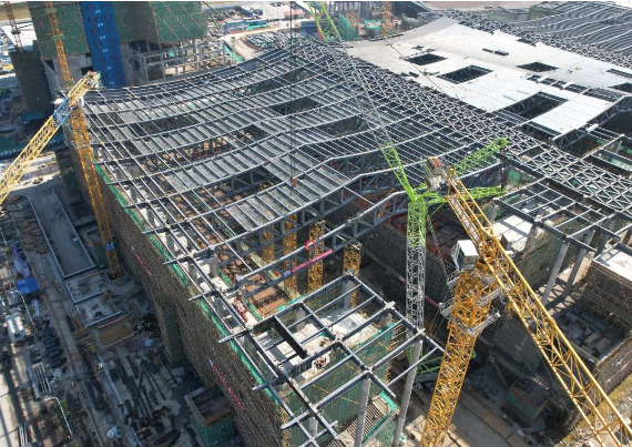 本項目鋼結(jié)構(gòu)桁架吊裝的順利完成,為后續(xù)檁條支撐、屋面壓型鋼板安裝、混凝土澆筑施工創(chuàng)造施工條件。截至目前,汕頭國際會展中心項目土方工程、地基及基礎(chǔ)工程、地下室工程均全部完成,主體結(jié)構(gòu)及鋼結(jié)構(gòu)完成約80%。汕投控集團(tuán)項目管理部全體人員將以此為契機(jī),再接再厲、鼓足干勁,做好安全生產(chǎn)、文明施工、質(zhì)量管理及風(fēng)險管控等工作,確保按時完成各項施工節(jié)點(diǎn)任務(wù)。