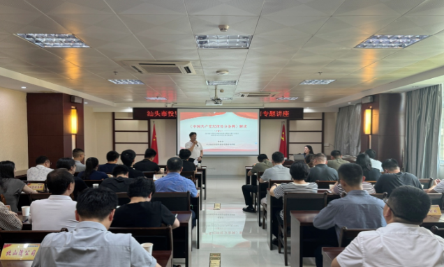 為深入學(xué)習(xí)貫徹新修訂的《中國共產(chǎn)黨紀(jì)律處分條例》,推動黨紀(jì)學(xué)習(xí)教育走深走實,7月18日,汕投控集團舉辦黨紀(jì)學(xué)習(xí)專題講座,邀請中共汕頭市委黨校林思含博士授課。講座由汕投控集團黨委委員、紀(jì)委書記杜凱鵬同志主持,集團公司班子成員、總部各部室正副職及臨時負(fù)責(zé)人、二級企業(yè)班子成員、三級企業(yè)及控股企業(yè)主要負(fù)責(zé)人、集團公司各黨支部書記參加。