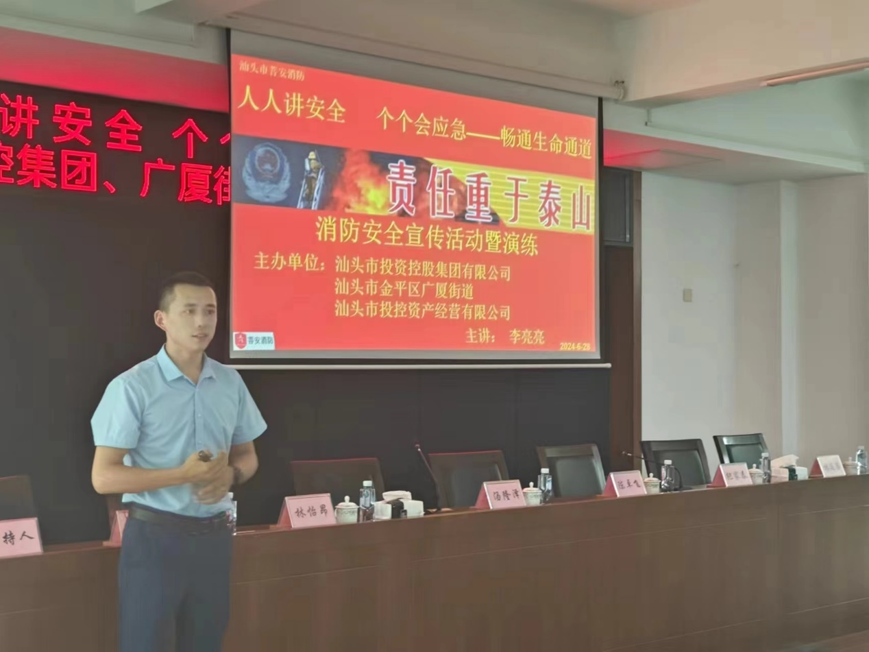 為進(jìn)一步增強(qiáng)員工消防安全意識(shí)和避險(xiǎn)逃生能力,結(jié)合汕頭市深化新時(shí)代文明單位創(chuàng)建,近日,汕投控集團(tuán)和下屬企業(yè)汕頭市投控資產(chǎn)經(jīng)營有限公司聯(lián)合廣廈街道以“人人講安全、個(gè)個(gè)會(huì)應(yīng)急——暢通生命通道”為主題,開展集中觀看“安全生產(chǎn)月”主題宣傳和事故警示教育片、舉辦“全民安全公開課”和應(yīng)急演練等安全生產(chǎn)教育系列活動(dòng)。公司各部門、各項(xiàng)目物業(yè)服務(wù)中心和廣廈街道各社區(qū)居委會(huì)共計(jì)100余人參加活動(dòng)。