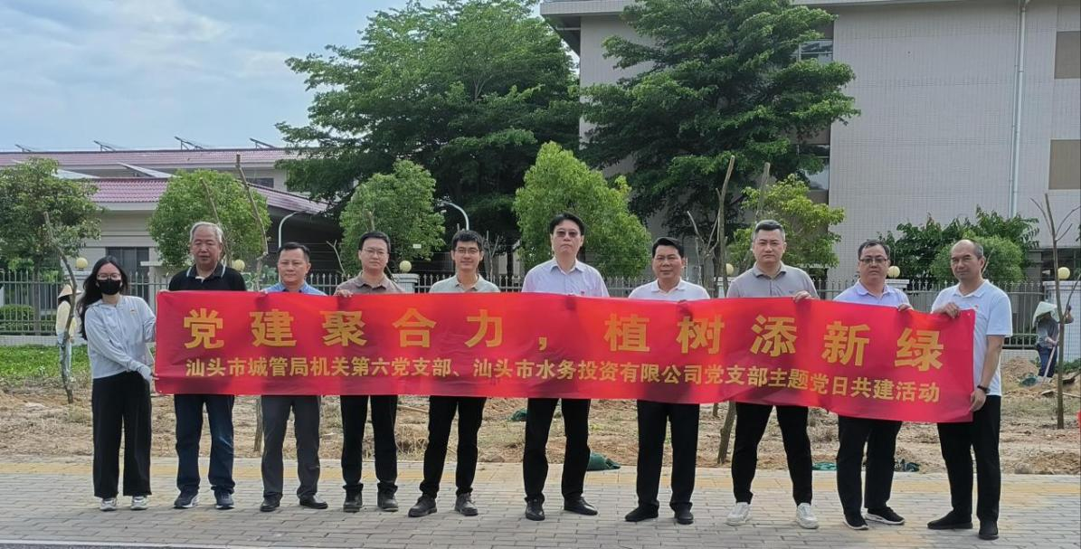 為深入貫徹落實習(xí)近平生態(tài)文明思想,踐行“綠水青山就是金山銀山”理念,近日,汕頭市水務(wù)投資有限公司黨支部聯(lián)合汕頭市城管局機關(guān)第六黨支部,在新溪污水處理廠二期廠區(qū)大門周邊開展“黨建聚合力,植樹添新綠”主題黨日共建活動,以實際行動助力綠美汕頭生態(tài)建設(shè)。