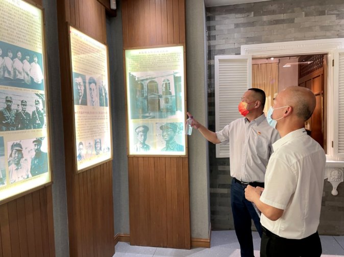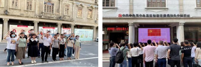 黨課結(jié)束后,全體黨員參觀海平路97號中共中央至中央蘇區(qū)秘密交通線汕頭中站舊址。通過展館內(nèi)文物展示、場景再現(xiàn)、視頻資料和講解員解說,大家追憶了這段崢嶸歲月,深切緬懷革命先烈為革命勝利而付出的努力與犧牲,更加堅(jiān)定了作為一名黨員的初心使命。在吳宏豪同志的帶領(lǐng)下,全體黨員現(xiàn)場重溫入黨誓詞,回溯入黨初心,鄭重立下忠心向黨、忠誠為民的使命諾言。